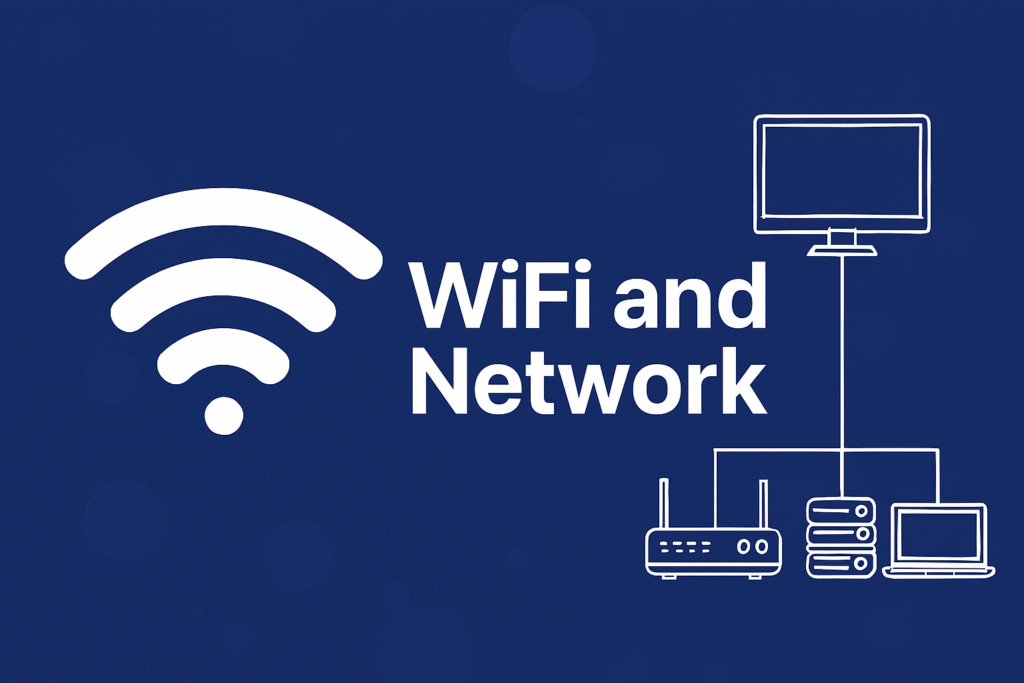 – Onsite and remote support – WiFi connectivity and optimization – Server setup and maintenance – VPN configuration and cybersecurity – Telecoms infrastructure and troubleshooting